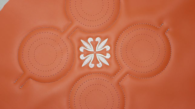 1、实现绣花、缝纫、冲孔于一体,花型任意设计,轻松实现冲、绣、缝任意搭配的复杂工艺。