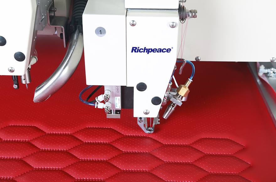 1、实现缝纫与冲孔于一体,电脑控制冲孔落点,冲出想要的组合花型。