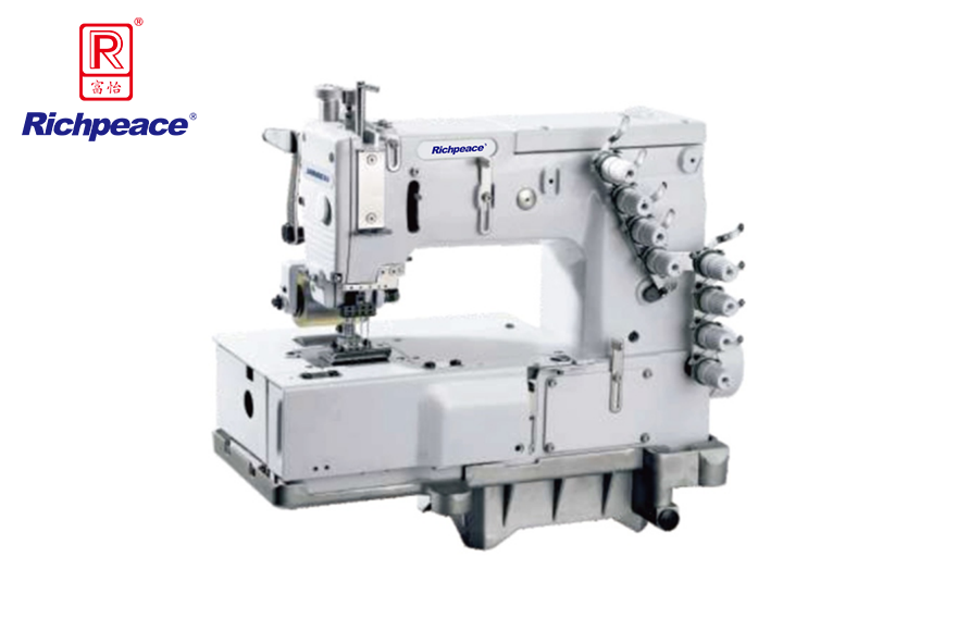 RP-1404系列为平台式多针机, 上松紧、 门襟滚条、上腰、装饰缝等。通用于内衣、运动服、女装、工作服、室内装饰品等。