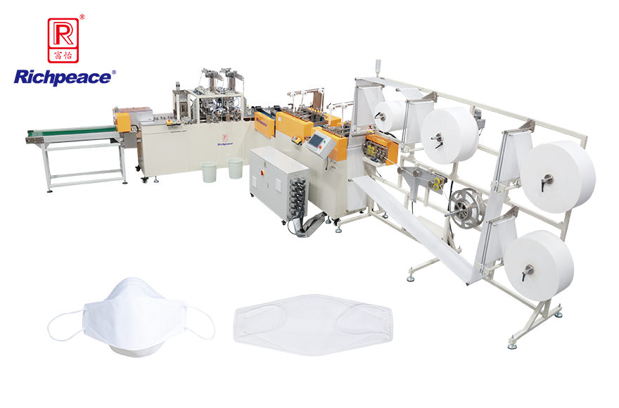 九游体育全自动柳叶口罩机,适用于柳叶型防护口罩(KF94标准)的自动化生产。