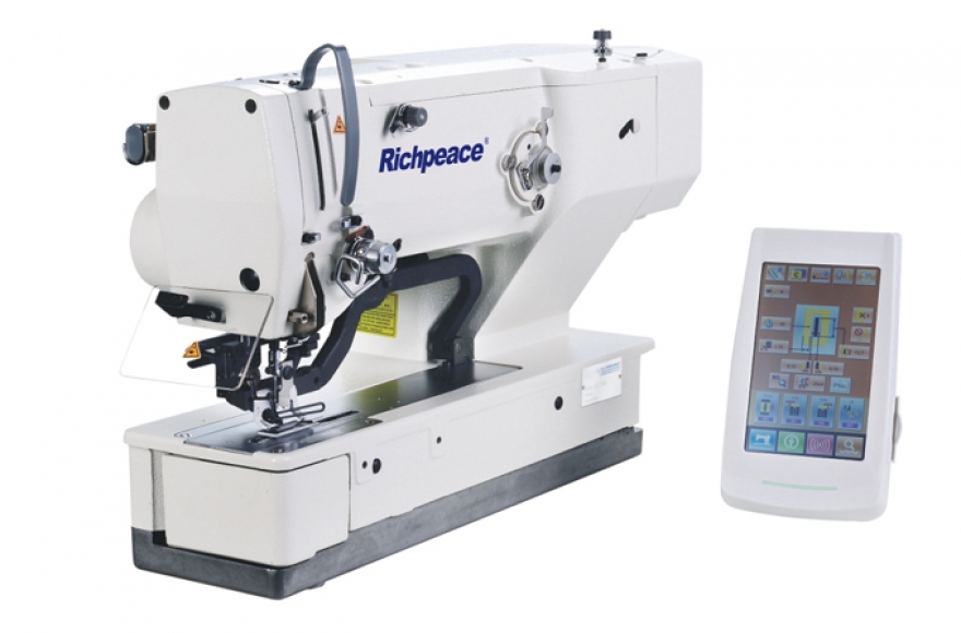 普通型电脑缝纫机,配置有一个小型的电脑操作屏,可以进如针步大小,针数预设等一系列设定,使用柔性面料的缝纫工作强度减小。在生产场地有限的预算下,可以适当考虑在生产方案中配置多台电脑缝纫,用以提升整个生产线的生产效率。