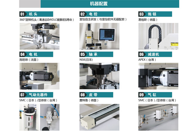 4、 进口伺服电机驱动,高精度直线导轨传动 ,确保花样美观,高品质缝制效果;
