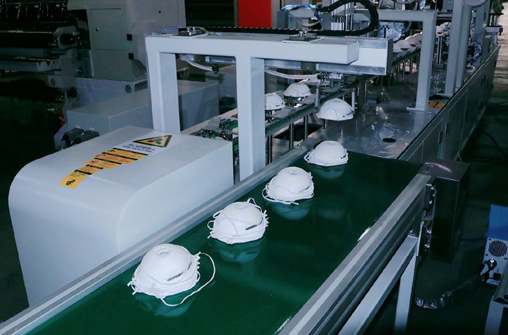 2、九游体育全自动罩杯口罩生产线实现了罩杯口罩从卷料到成品的整个流程。该生产线主要由以下工位组成:料架、上杯体成型、杯体成型、转序、移印、鼻梁条焊接、头带焊接、呼吸阀打孔超声波焊接、口罩拾取。每台机器根据客户需求选择进行设计安装。