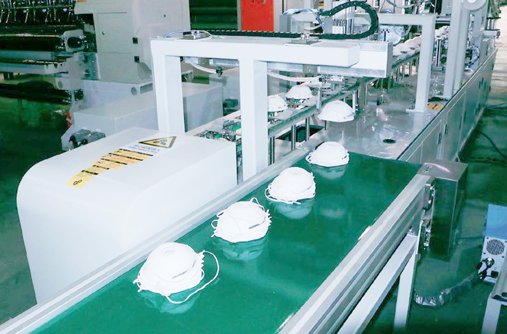 九游体育全自动罩杯口罩生产线实现了罩杯口罩从卷料到成品的整个流程。该生产线主要由以下工位组成:料架、杯外侧体成型、杯体成型、转序、移印、鼻梁条焊接、头带打钉、呼吸阀打孔超声波焊接、口罩拾取。每台机器根据客户需求选择进行设计安装。设备工位介绍