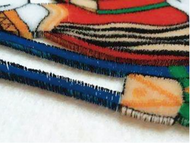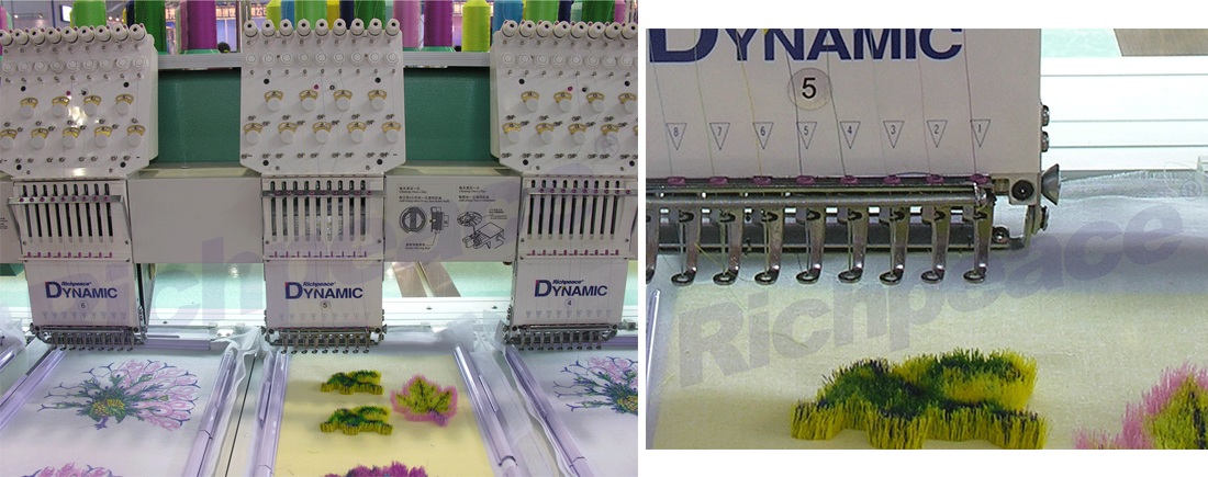 3、根据花版要求,预留不同的切线长度,创造出立体三维造型,绣线根根直挺,图案清晰凸显。